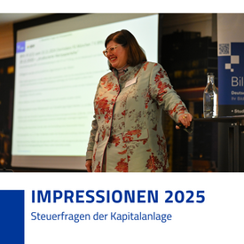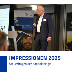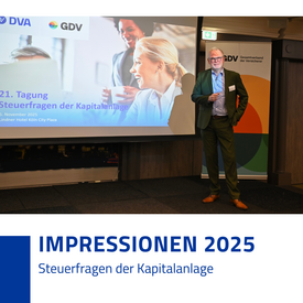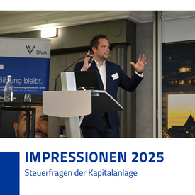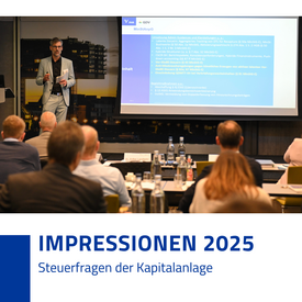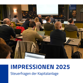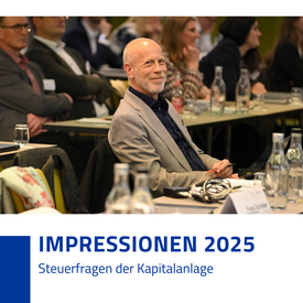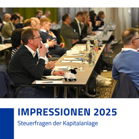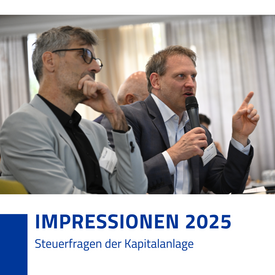 Den Abschluss bildet der Vortrag von Herrn Dr. Stadler, der praxisrelevante Fragestellungen aus der Beratung aufgreift – darunter die Realisierung stiller Lasten bei Investments in Zielfonds-Personengesellschaften sowie die Realisierung stiller Reserven bei Immobilien im Direktbestand.